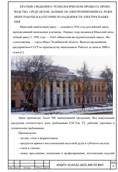 КРАТКИЕ СВЕДЕНИЯ О ТЕХНОЛОГИЧЕСКОМ ПРОЦЕССЕ ПРОИЗВОДСТВА, СРЕДЕ ЦЕХОВ, ДАННЫЕ ОБ ЭЛЕКТРОПРИЕМНИКАХ, РЕЖИМЕ ИХ РАБОТЫ И КА