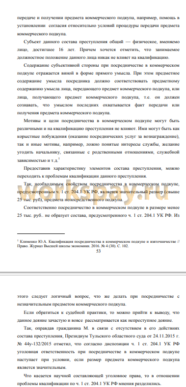 КОММЕРЧЕСКОГО ПОДКУПА В УК РФ