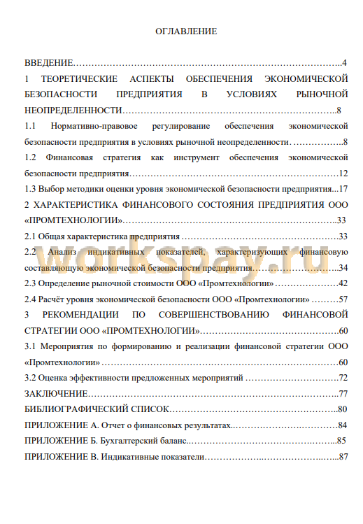 Тема: Совершенствование финансовой стратегии ООО «Промтехнологии», направленной на обеспечение его экономической безопасности в условиях рыночной неопределенности
