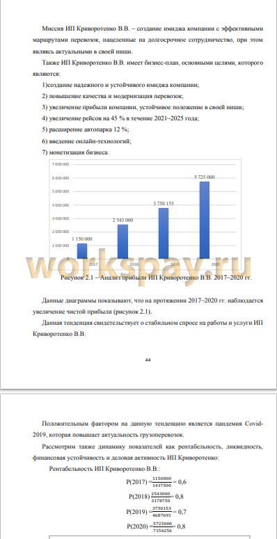 Во втором разделе ВКР охарактеризована деятельность ИП Криворотенко В.В., проведена организационно-экономическая характеристика, проанализированы основные финансовые показатели, а именно рентабельность, ликвидность, финансовая устойчивость, рассмотрена и описана логистическая система предприятия ИП Криворотенко В. В.