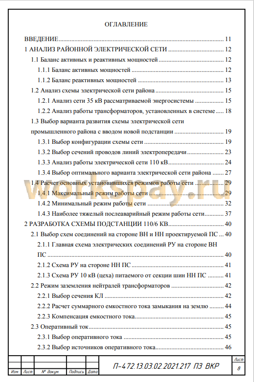 В выпускном квалификационном проекте на основании заданных требований проводится присоединение подстанции 110/6 кВ с разработкой релейной защиты и автоматики. Задано количество входящих линий - 2 стороны высшего напряжения, мощность нагрузки равна 45 МВА.