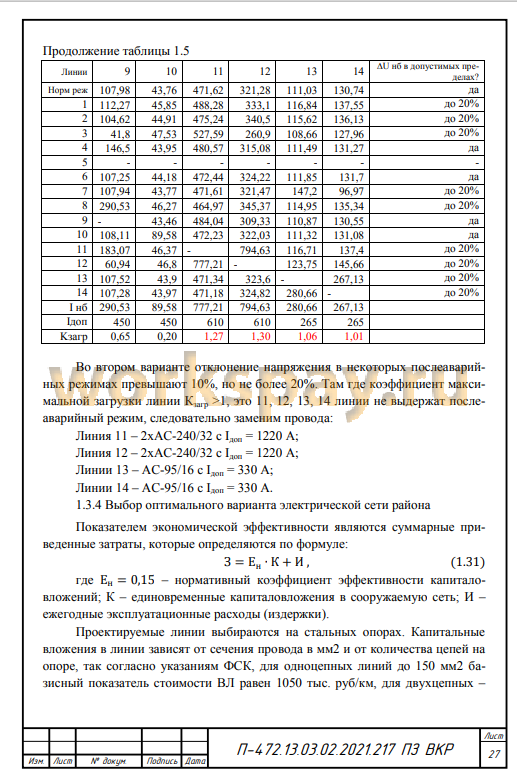 1.3.4 Выбор оптимального варианта электрической сети района 27