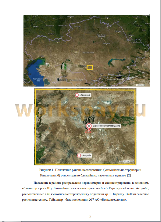 В административном отношении площадь месторождения расположена на территории Сузакского района Туркестанской Республики Казахстан (Рисунок 1) в пределах тополиста L-42-XXVI. Геологический отвод, расположенный в юго-западной части Шу-Сарысуйской депрессии, имеет площадь 26 км2 и ограничен угловыми точками с координатами, приведенными ниже в таблице 1.