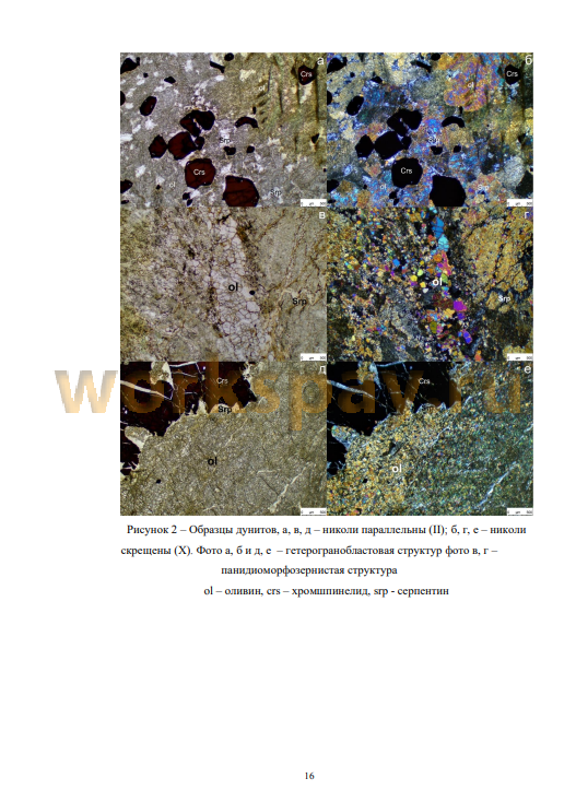 Целью работы является изучение петрологической характеристики пород ультрамафитовых массивов. Для достижения поставленной цели были выполнены такие задачи, как: систематизация и анализ геологической информации по изучаемому району и объекту исследования; петрографическая типизация и установление особенностей петрогеохимического и минералогического состава образцов ультрамафитов.