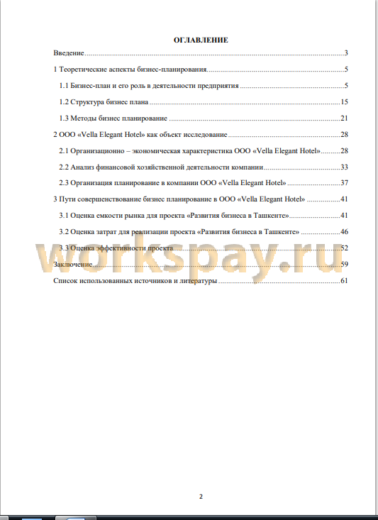 3 Пути совершенствование бизнес планирование в ООО «Vella Elegant Hotel» 41