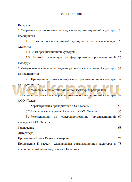 3.3.Рекомендации по совершенствованию организационной 60 культуры ООО «Телец» Заключение 68