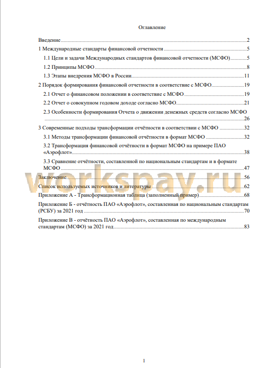 Целью выпускной квалификационной работы является изучение и адаптация современных методик пересмотра финансовой отчетности из национальных стандартов в международные стандарты финансовой отчетности (далее - МСФО).