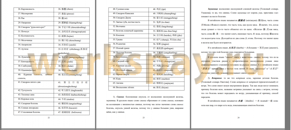 2) собрать материал (обиходные наименования детских болезней в русском и китайском языках);