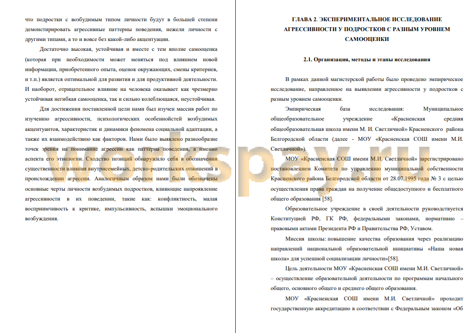 В-третьих, эмпирическое исследование, направленное на выявлении агрессивности у подростков с разным уровнем самооценки, было проведено на базе МОУ «Красненская СОШ имени М.И. Светличной».