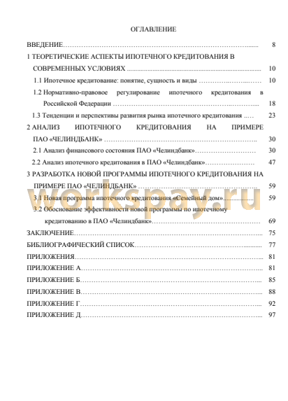 Цель работы - анализ программ ипотечного кредитования на примере ПАО «Челиндбанк» и разработка новой программы по повышению