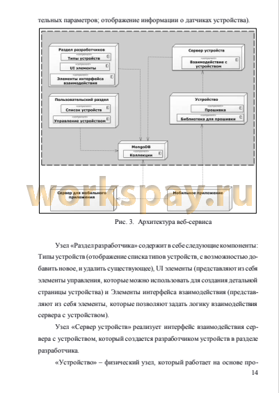 В главе «Проектирование веб-сервиса для управления беспроводными устройствами интернета вещей» сформулирован анализ требований, разработана архитектура веб-сервиса и составлена организация базы данных.