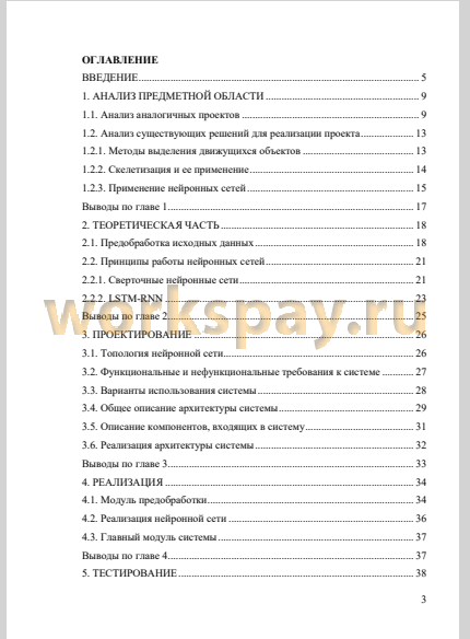 В пятой главе «Реализация системы» приводится техническая реализация системы на основе поставленного списка требований, а также описывается подобранная топология нейронной сети.