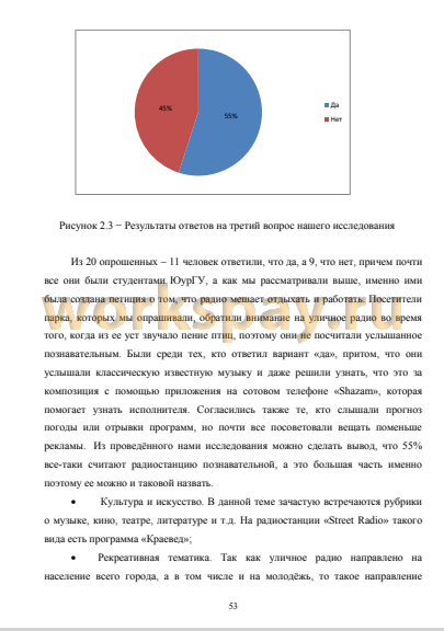 По первому параграфу второй главы, после проведенного опроса мы сделали вывод, что на радиостанции «Street Radio» присутствует большое количество рекламы. Также мы узнали основные направления деятельности и развития уличного городского радио «Street Radio».