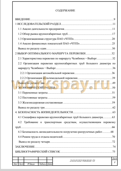 В данной выпускной квалификационной работе было проработано 2 маршрута доставки трубной продукции из г. Челябинск в г. Выборг:
