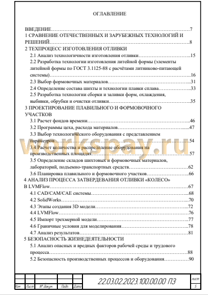 В выпускной квалификационной работе разработана технология изготовления отливки «Колесо» из стали 35Л ГОСТ 977-88 с учетом всех требований на литую деталь с использованием современного оборудования и использованием новейших технологий в области литейного производства.