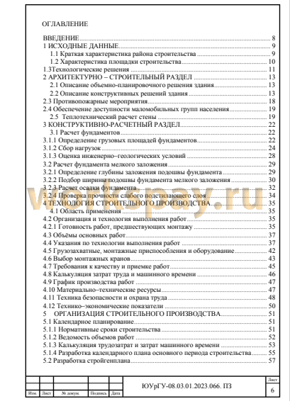 Во втором разделе выполнены расчет строительных конструкций, в частности сбор нагрузок и определение размеров фундаментов мелкого заложения.