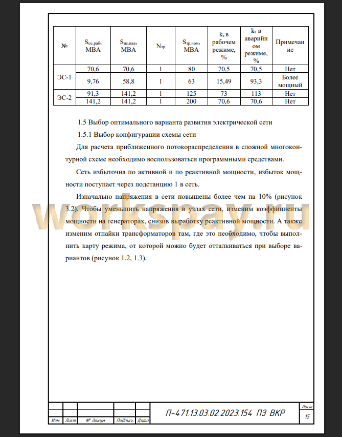 1.5 Выбор оптимального варианта развития электрической сети 15