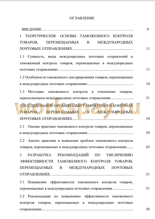 Предмет выпускной квалификационной работы - таможенный контроль товаров, перемещаемых в международных почтовых отправлениях.