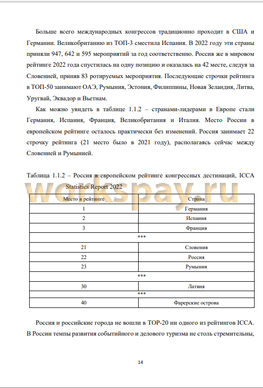 Основываясь на данных различных источников, можно сделать такой вывод: в целом во многих странах мира увеличивается популярность проведения конгрессных и выставочных мероприятий. Однако лидеры в этой сфере прочно закреплены и остаются привлекательными направлениями в области делового туризма.