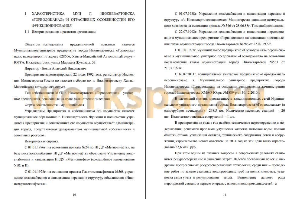 Объектом исследования данного дипломного проекта является муниципальное унитарное предприятие города Нижневартовска «Горводоканал».
