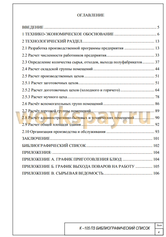 В работе проведено технико-технологическое обоснование проекта: обоснование необходимости строительного предприятия, здания, пропускной способности; обоснование места строительства; обоснование режимов работы; расчет дневной производственной программы; составление меню; рассмотрена организация обслуживания и организация производства.