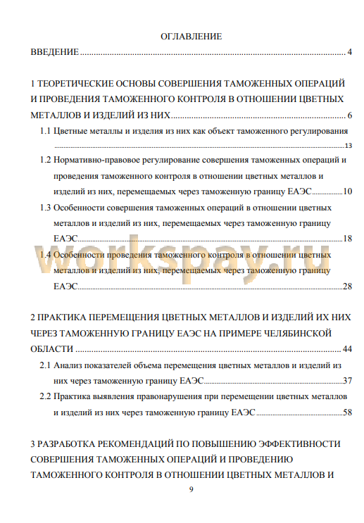 Предмет выпускной квалификационной работы - анализ порядка проведения таможенных операций и проведения таможенного контроля в отношении цветных металлов и изделий из них, перемещаемых через таможенную границу ЕАЭС.