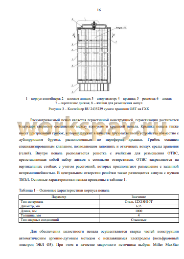 1.2 Основные характеристики существующих пеналов для сухого хранения ОЯТ 12
