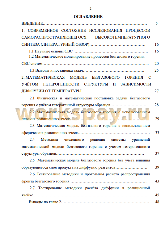 Глава 1 посвящена обзору научно-технической литературы. В главе представлены фундаментальные основы метода самораспространяющегося высокотемпературного синтеза как способа получения различных материалов и соединений. Рассмотрены экспериментальные и теоретические работы, посвященные стационарным и нестационарным моделям безгазового горения процессов СВС составов. В теоретических работах, посвященных исследованию влияния гетерогенности структуры прессованных смесей порошков для СВС, разработаны стационарные модели, учитывающие гетерогенность с использованием различных геометрических моделей реакционных ячеек. Из анализа научно-технической литературы выявлено, что нестационарные явления в этих моделях исследованы недостаточно. С учётом выводов по результатам обзора научно-технической литературы формулируются цели и задачи диссертационной работы.