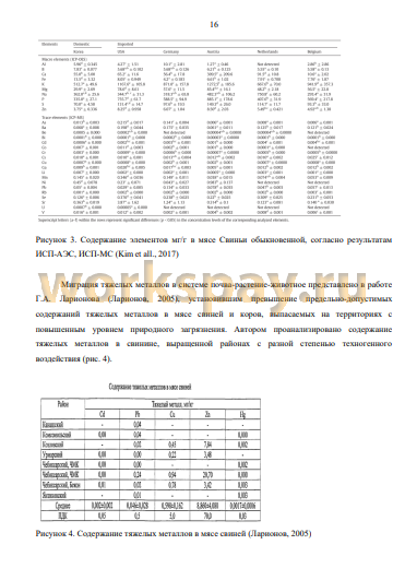Практическая значимость. Выявленные особенности концентрирования и распределения химических элементов в органах и тканях Свиньи домашней на территориях с разными геоэкологическими условиями позволяет дифференцировать их по степени экологической нагрузки, что может являться полезным дополнением к проведению геоэкологического мониторинга территорий.
