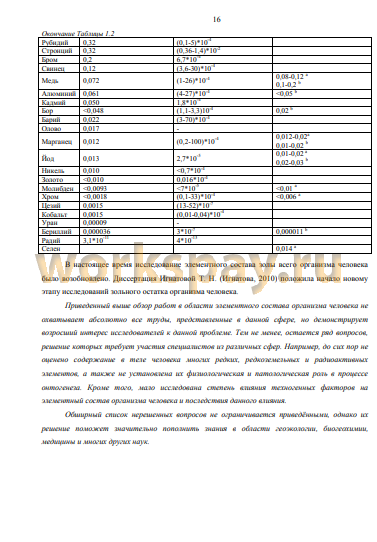 Глава 1 представляет собой краткий литературный обзор по имеющимся работам в области элементного состава организма человека, а также его зольного остатка.