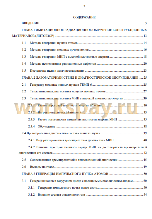 Во второй главе представлена экспериментальная установка и диагностическое оборудование для измерения параметров МИП. Выполнен анализ влияния радиационных дефектов на погрешность тепловизионной диагностики МИП и представлена методика коррекции результатов измерений плотности энергии. Рассмотрен эффект влияния заряда ионного пучка на времяпролетную диагностику его состава.