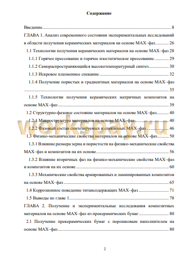 Предмет исследования. Фазовый состав, микроструктура, физикомеханические свойства, механизмы разрушения, теплофизические свойства, механизмы реакционного взаимодействия при спекании, атомная и электронная структура твёрдорастворных, механизмы коррозии при высокотемпературном окислении на воздухе композитных и композиционных материалов на основе МАХ-фаз.