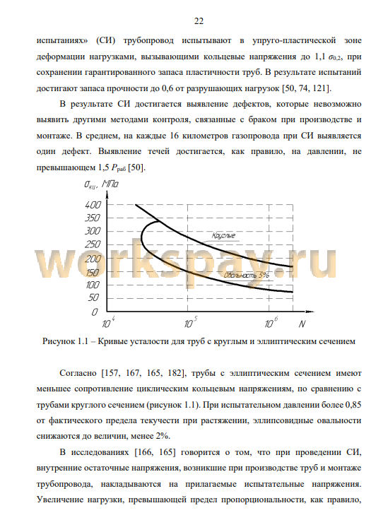 6. Получены корреляционные зависимости между нагрузками соответствующим степени деформации 3% и нагрузками предела текучести. На основании этих зависимостей рассчитан коэффициент превышения испытательного давления над пределом текучести при проведении стресс- испытаний, равный 1,06. Проанализирована сходимость формул определения испытательного давления для тонкостенных и толстостенных трубопроводов. Применение формулы Барлоу обосновано при соотношении толщины стенки к наружному радиусу трубопровода не более 0,05.
