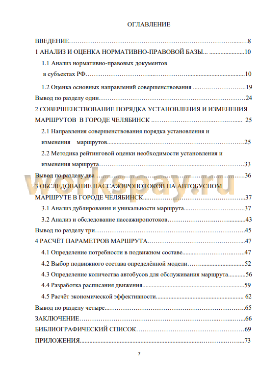 Задачами работы являются: анализ нормативно-правовых документов городов Российской Федерации, регламентирующих порядки установления и изменения маршрутов; разработка основных направлений совершенствования порядка в городе Челябинске; разработка алгоритма количественной оценки необходимости установления и изменения маршрута; использование полученных теоретических результатов на конкретном примере проведения расчётов параметров транспортного обслуживания на одном из автобусных маршрутов города Челябинска.