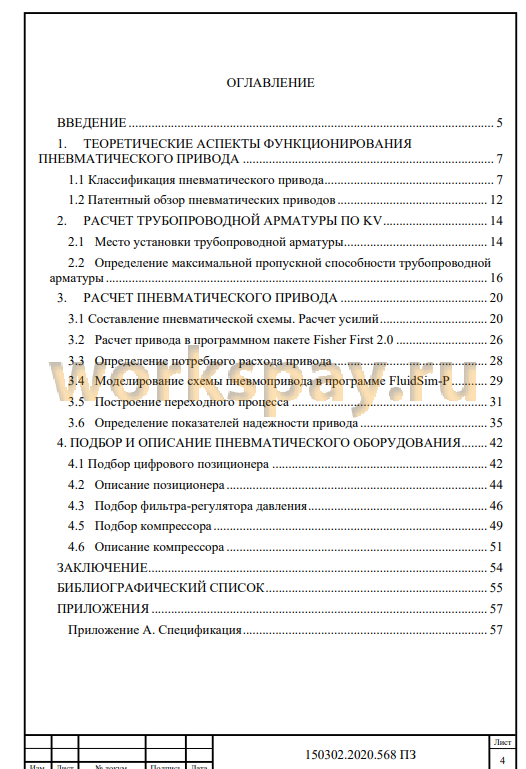 Данная работа состоит из четырех глав, в ходе первой главы рассмотрены теоретические аспекты пневматического привода, далее осуществлен расчет трубопроводной арматуры по Kv и в результате был выбран клеточный клапан Fisher ET, основываясь на исходных данных.