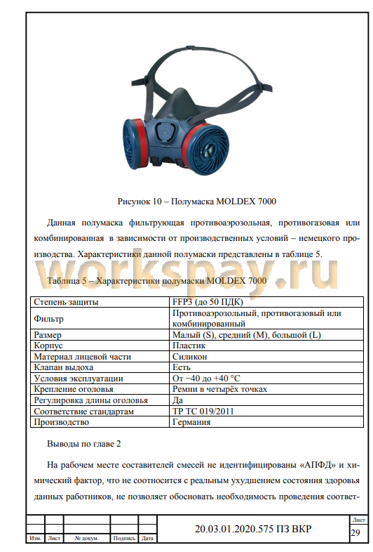 2.2 Исследование применяемого СИЗОД на участке специй и вспомогательных