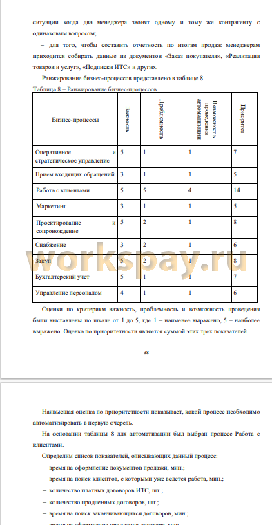 После этого было проведено ранжирование бизнес-процессов. В результате был выявлен бизнес-процесс для автоматизации - процесс «Работа с клиентом».