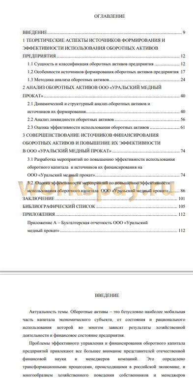 Цель выпускной квалификационной работы - разработка рекомендаций по совершенствованию политики финансирования и повышению эффективности использования оборотных активов ООО «Уральский медный прокат».