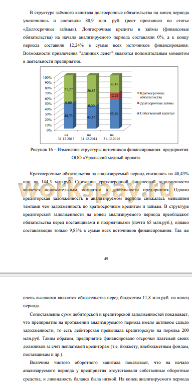 В результате предложенных мероприятий у предприятия в прогнозируемом 2016 году нет реальной угрозы утраты платежеспособность. Таким образом, меры предложенные в дипломном проекте по улучшению системы управления оборотным капиталом ООО «Уральский медный прокат» можно считать экономически обоснованными, целесообразными и своевременными, они позволили повысить эффективность использования оборотных средств и улучшили структуру источников финансирования (что подтверждает оценка финансовой устойчивости и платежеспособности прогнозного баланса).