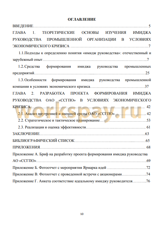 Структура выпускной квалификационной работы состоит из введения, главы о теоретических основах изучения имиджа руководства промышленной организации в условиях экономического кризиса, главы по разработке проекта формирования имиджа руководства ОАО «ССГПО», из заключения, библиографического списка и приложений.