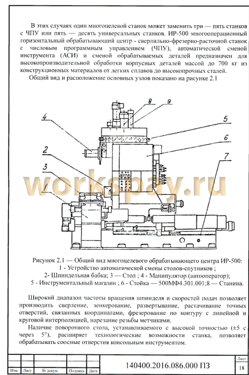2.1 Обрабатывающий центр ИР-500. Общие сведения, характеристики... 17
