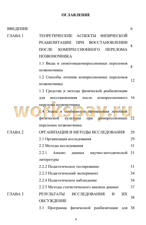 3. После изучения теоретических основ применения средств физической реабилитации в восстановлении после компрессионного перелома позвоночника было проведено экспериментальное исследование - разработана и апробирована программа физической реабилитации для восстановления мужчин после компрессионного перелома позвоночника.