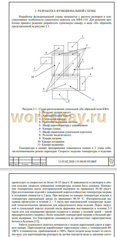 Последние разработки, связанные с выпуском тротуарной плитки, бордюрного камня и т.п., имеют большой недостаток в размерах площадей для осуществления сушки готовой продукции с поддержанием условий, приближенных к технологии набора прочности. Разработка электрооборудования сушильного агрегата линии КФА-110, это способ в автоматическом режиме производить все действия по набору прочности и сушке существующих изделий согласно технологическим условиям.
