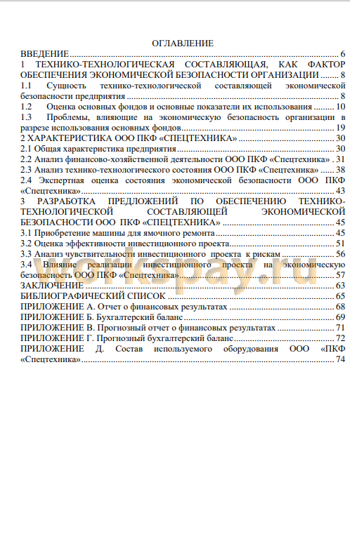 Тема: Разработка предложений по обеспечению технико-технологической составляющей экономической безопасности ООО ПКФ «Спецтехника»