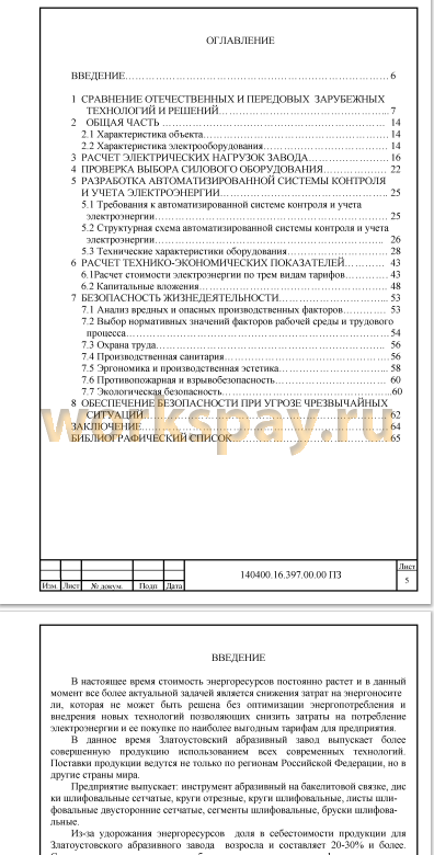 Целью дипломного проекта является снижение эксплуатационных затрат за электроэнергию Златоустовского абразивного завода.
