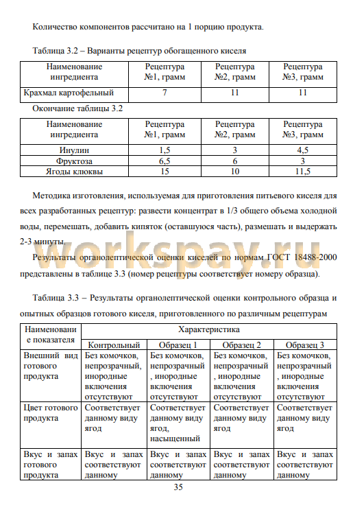 3.1 Разработка рецептуры обогащенного киселя и оценка потребительских свойств продукта 36