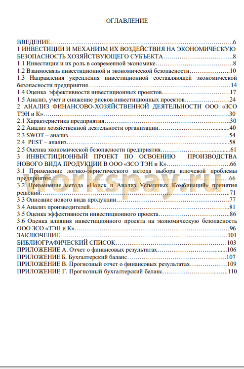 Цель выпускной квалификационной работы - рассмотрение механизма воздействия инвестиций на экономическую безопасность предприятия (на примере ООО Завод сварочного оборудования «ТЭН и К»).