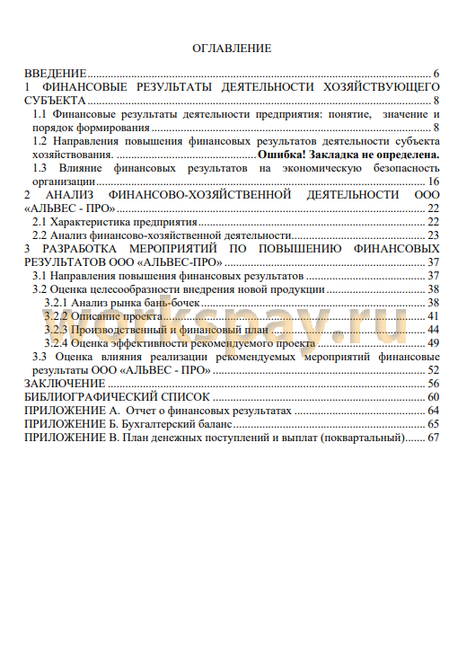 Целью выпускной квалификационной работы является разработка мероприятий по повышению финансовых результатов предприятия ООО «АЛЬВЕС - ПРО».