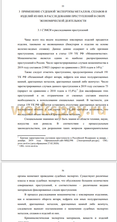 - изучение практической реализации исследования ювелирных изделий из драгоценных металлов зарубежного производства посредством производства судебной экспертизы металлов, сплавов и изделий из них при расследовании преступлений в сфере экономической деятельности;