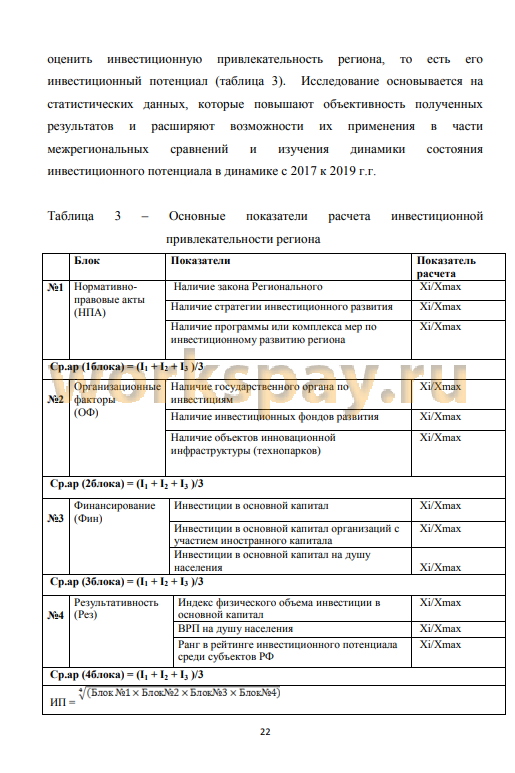 Предмет исследования - оценка инвестиционной привлекательности региона.